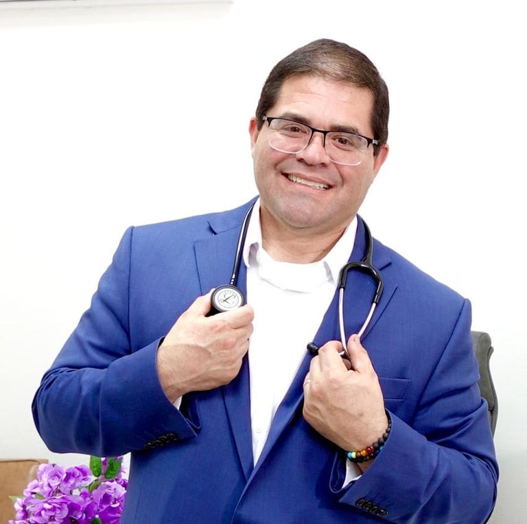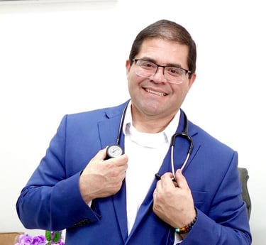 El Dr. Juan Carlos Ríos Sotelo es especialista en diabetes y salud integral, con un enfoque que permite mantener niveles saludables de glucosa sin restricciones alimenticias innecesarias. Atiende una amplia gama de enfermedades y procedimientos, desde diabetes y complicaciones metabólicas, control de peso, ortopedia y traumatología, hasta cirugía menor, enfermedades cardiovasculares, medicina interna, pediatría, geriatría y sueroterapia. Su propósito es mejorar la calidad de vida de sus pacientes con resultados visibles en corto plazo.